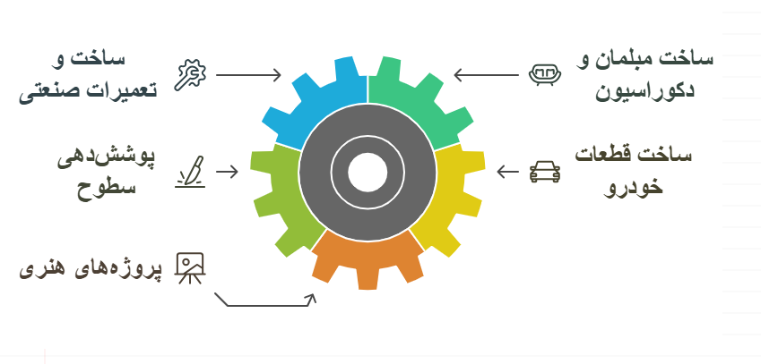اپوکسی دیر گیر در صنایع مختلف کاربردهای متنوعی دارد که به برخی از آنها اشاره میکنیم: