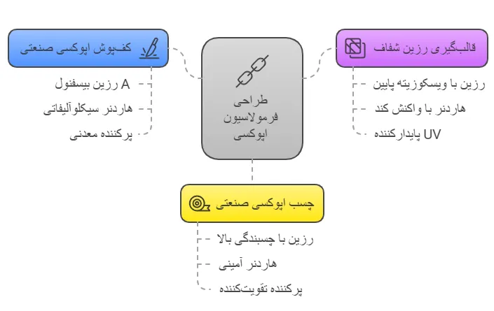 فرمولاسیون اپوکسی بسته به کاربرد نهایی آن تغییر میکند. برای نمونه: