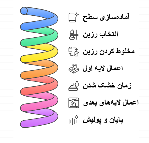 اسپری انجام شود. در این مرحله، باید توجه داشت که لایه به طور یکنواخت و بدون حبابهای هوا روی سطح پخش شود.